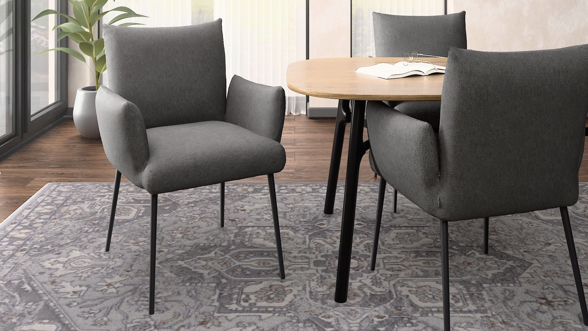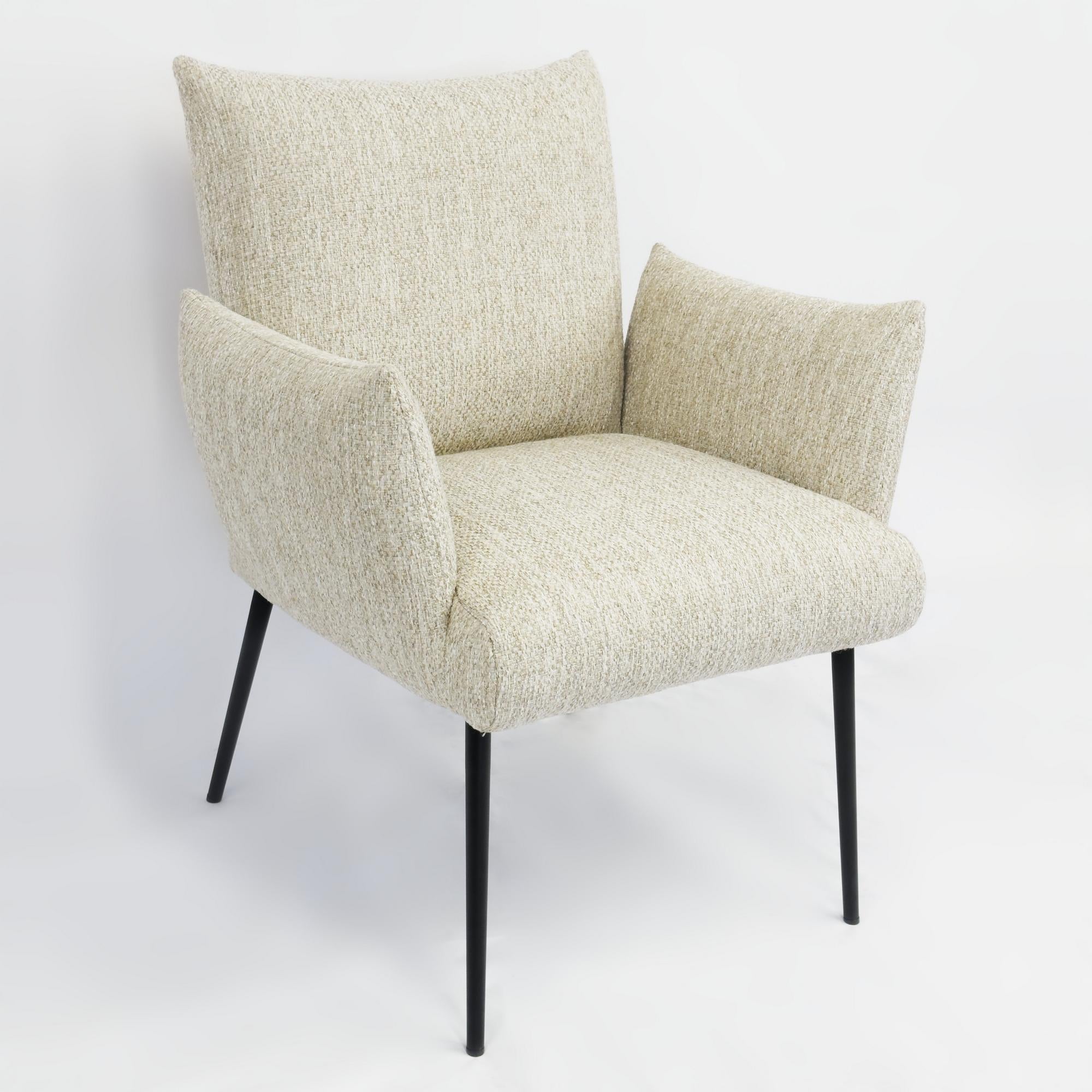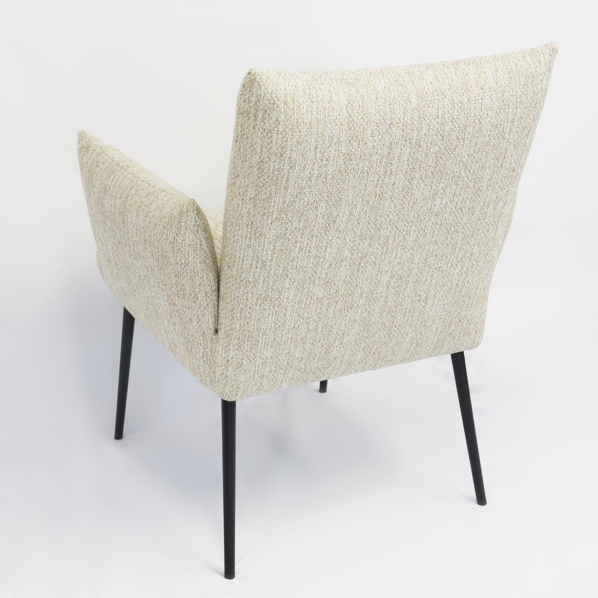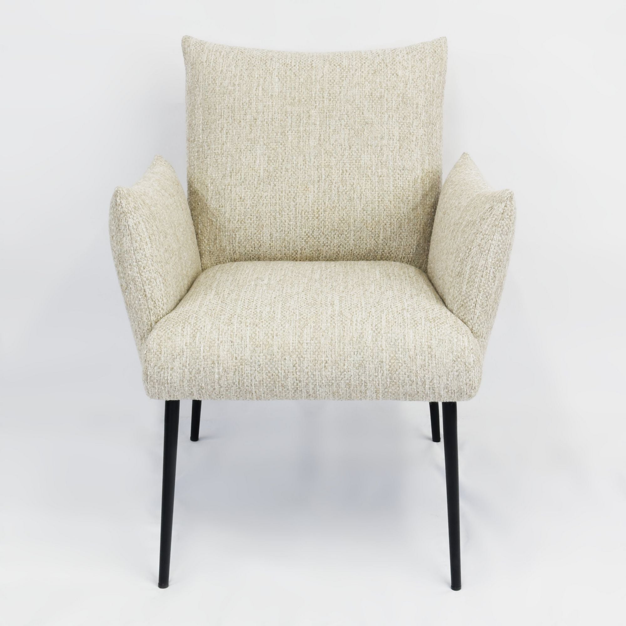 Die schlanken, nach unten zulaufenden Metallbeine geben dem Armlehnstuhl eine leichte, moderne Optik und sorgen gleichzeitig für Stabilität. Dadurch eignet sich der Stuhl sowohl für den privaten Wohnbereich als auch für den intensiveren Einsatz, zum Beispiel in Besprechungs- oder Wartebereichen.