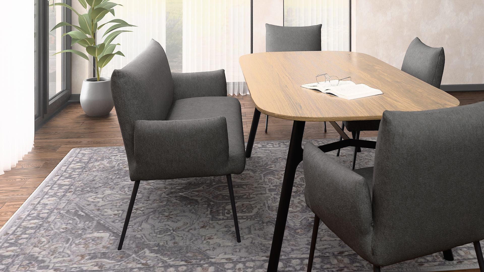 Der Armlehnstuhl Corte ist ein moderner Komfortstuhl mit besonders hochwertiger Polsterung. Dank seiner durchdachten Konstruktion und der professionellen Federung bietet er außergewöhnlichen Sitzkomfort – ideal für den Esstisch, Besprechungsräume oder moderne Loungebereiche.