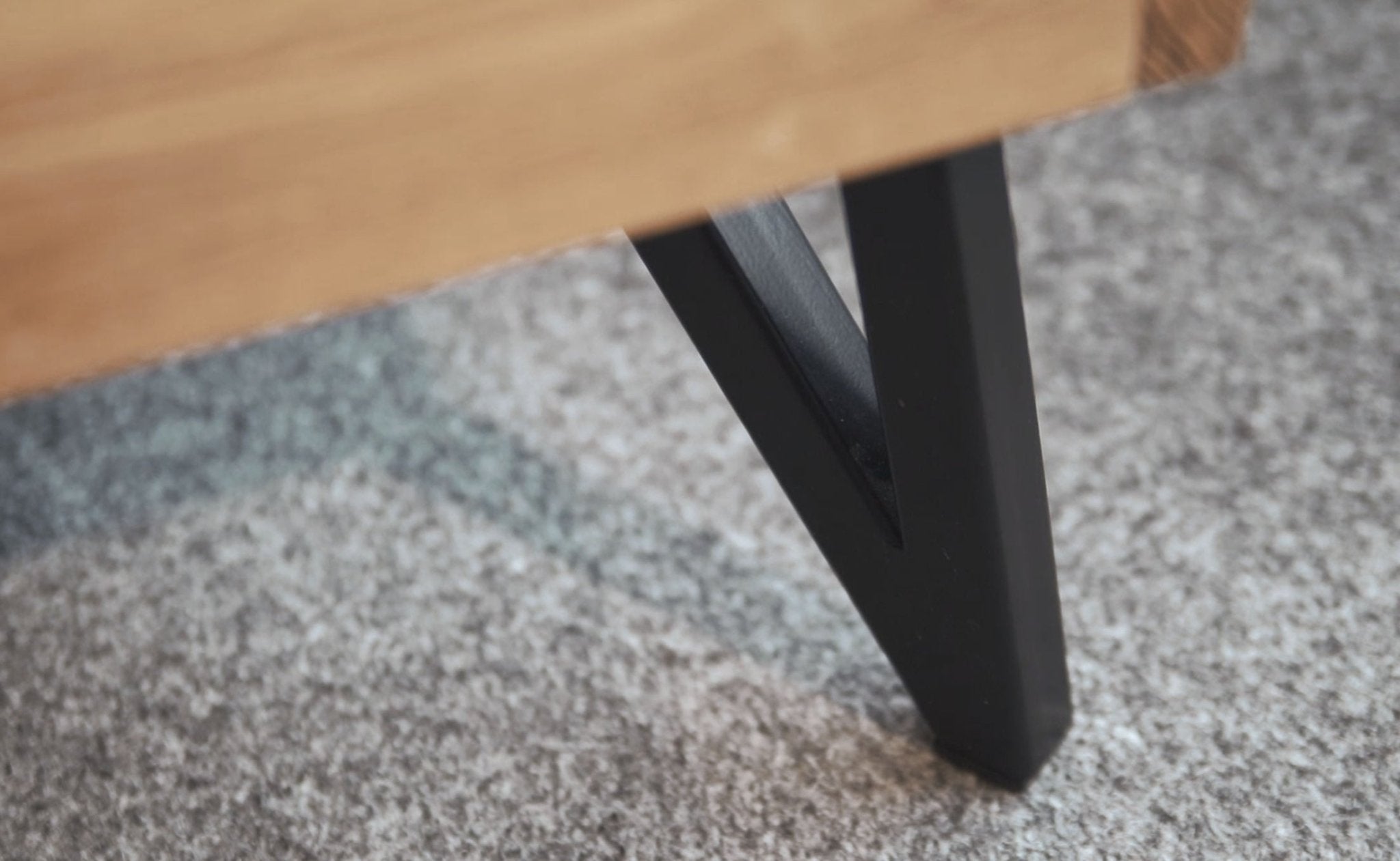Eichenholz überzeugt durch seine Härte, Beständigkeit und charakteristische Maserung. Das verwendete Wildeichenholz trägt dank seiner markanten Äste und Farbnuancen zu einem besonders lebendigen Erscheinungsbild bei.