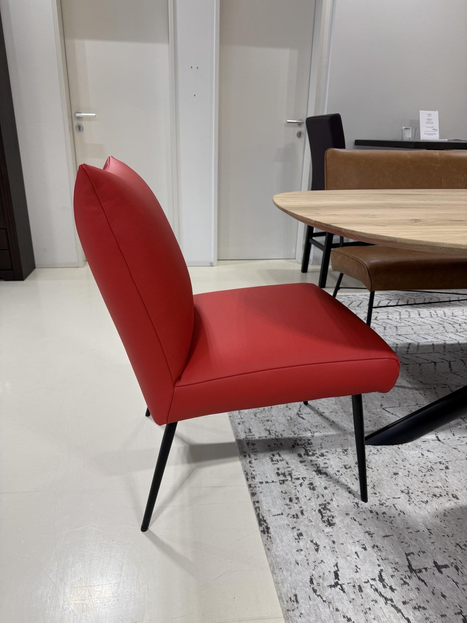 Der Stuhl ist in Dickleder Toledo ferrari abgebildet. Es stehen viele Lederfarben zur Auswahl.