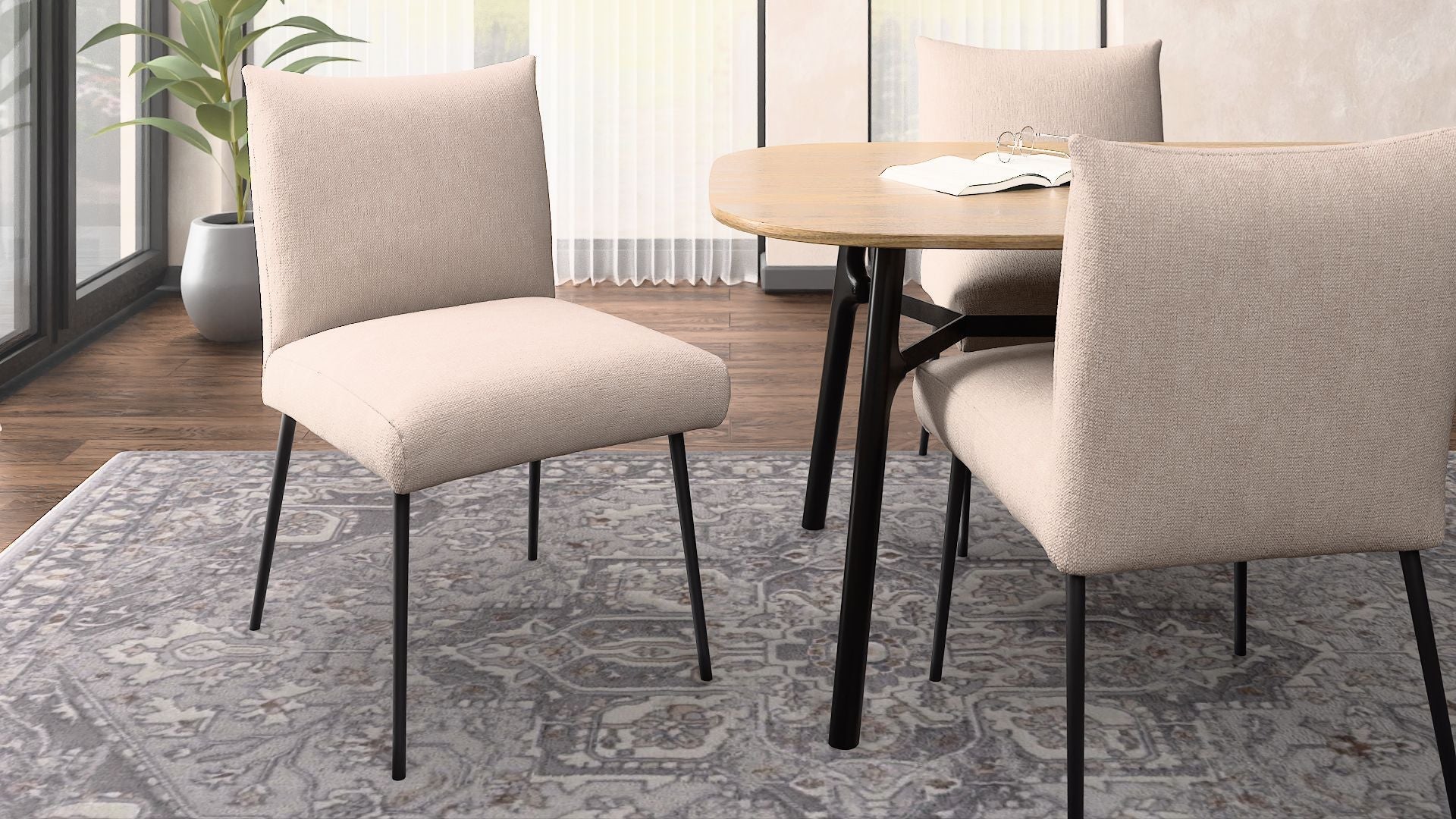 Die schlanken, nach unten zulaufenden Metallbeine geben dem Stuhl eine leichte, moderne Optik und sorgen gleichzeitig für Stabilität. Dadurch eignet sich der Stuhl sowohl für den privaten Wohnbereich als auch für den intensiveren Einsatz, zum Beispiel in Besprechungs- oder Wartebereichen.