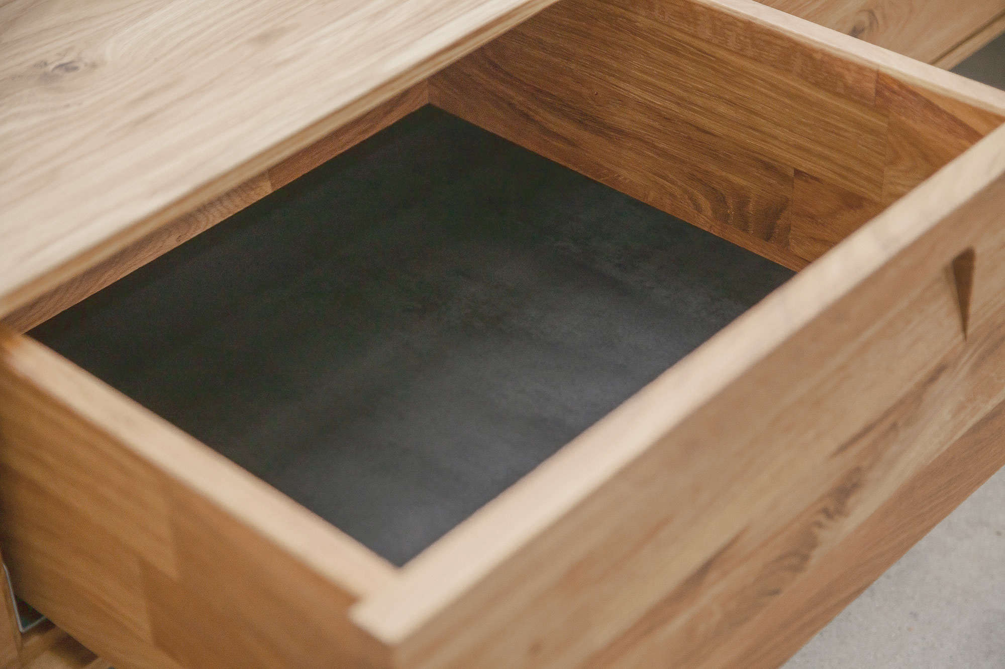 - Eigenschaften: ökologische Materialien, aufgebautes Möbelstück, aus nachhaltiger Forstwirtschaft, made in EU, mit Schublade(n)