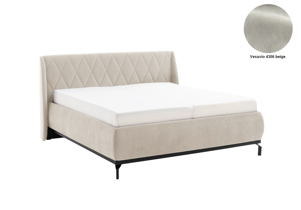 Polsterbett Siena mit Metallgestell und extra hohem Kopfteil und Rautensteppung
