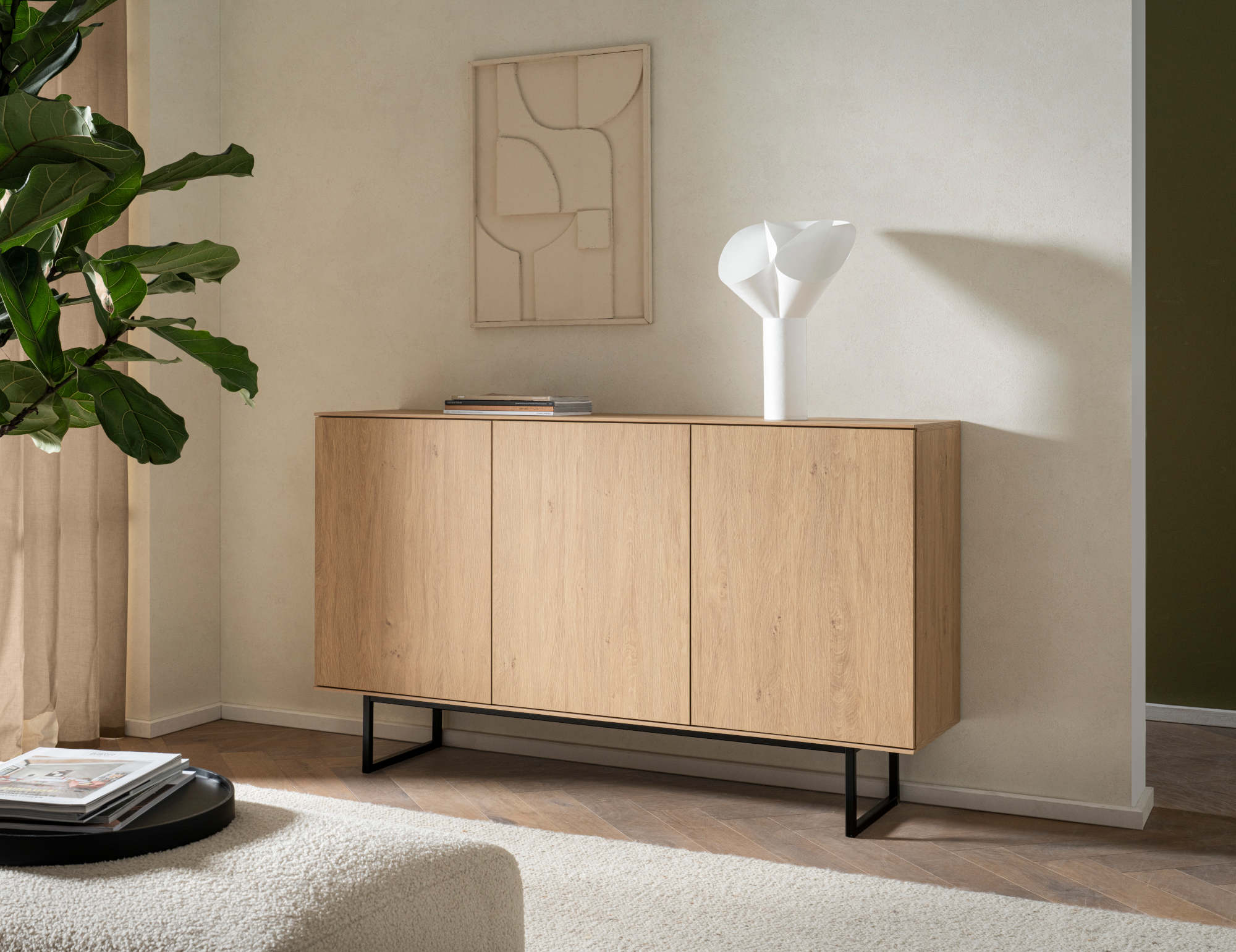 Geradliniges Sideboard mit drei grifflosen Türen, das dein Zuhause wohnlich und modern gestaltet.