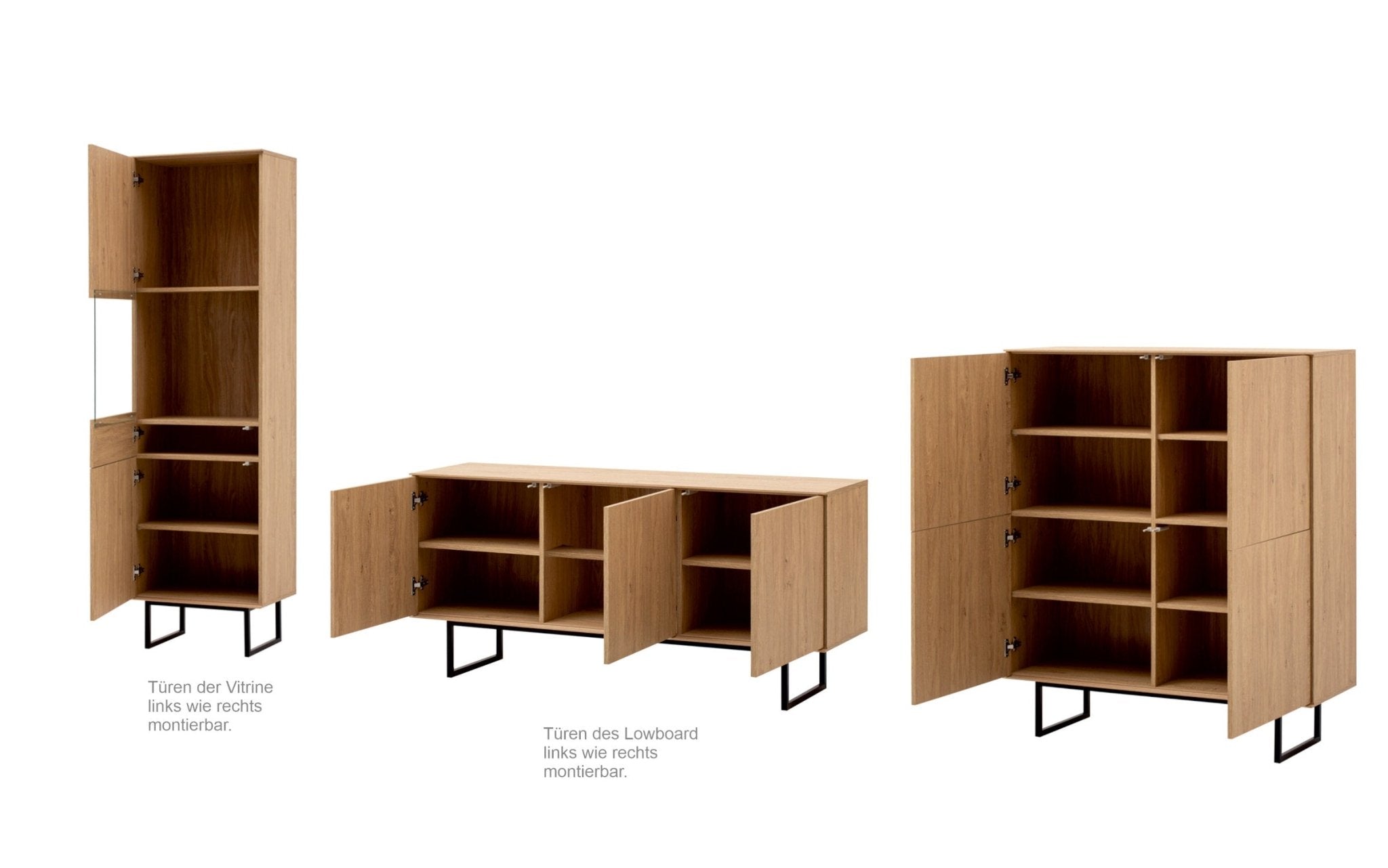 Das Set bietet hohen Komfort durch push-to-open Türen und höhenverstellbare Fachböden.